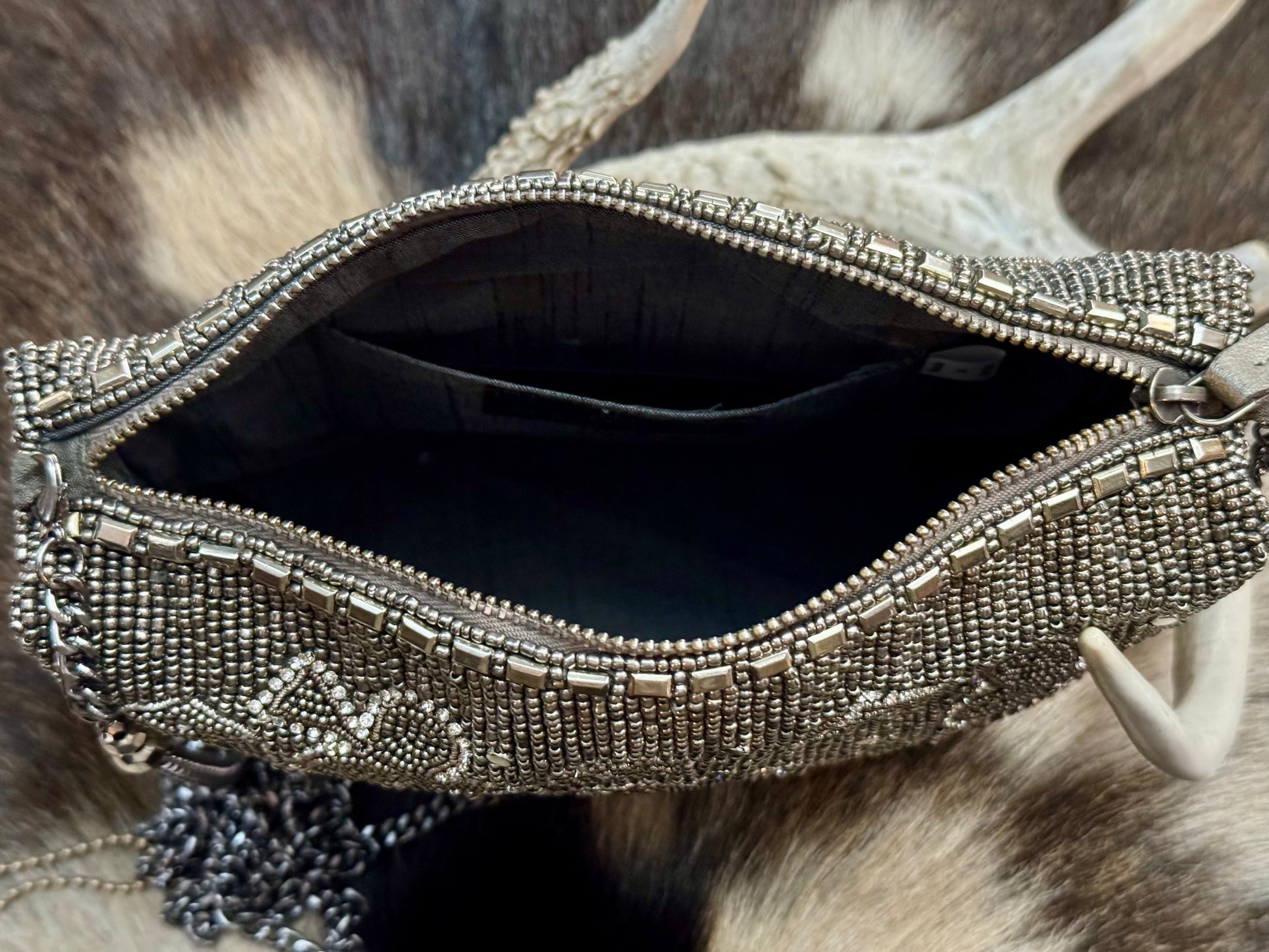 Well Suited Cards and Dice Black Beaded Crossbody Handbag